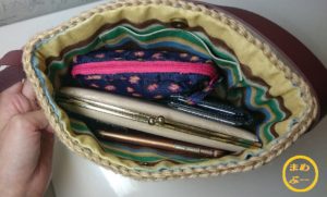 財布、免許書、小さなポーチ、スマホ程度は入るように、小さいながらも調整して作りました~!