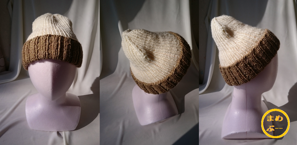 ゴールドとホワイトで作ったバイカラーのニット帽です♪