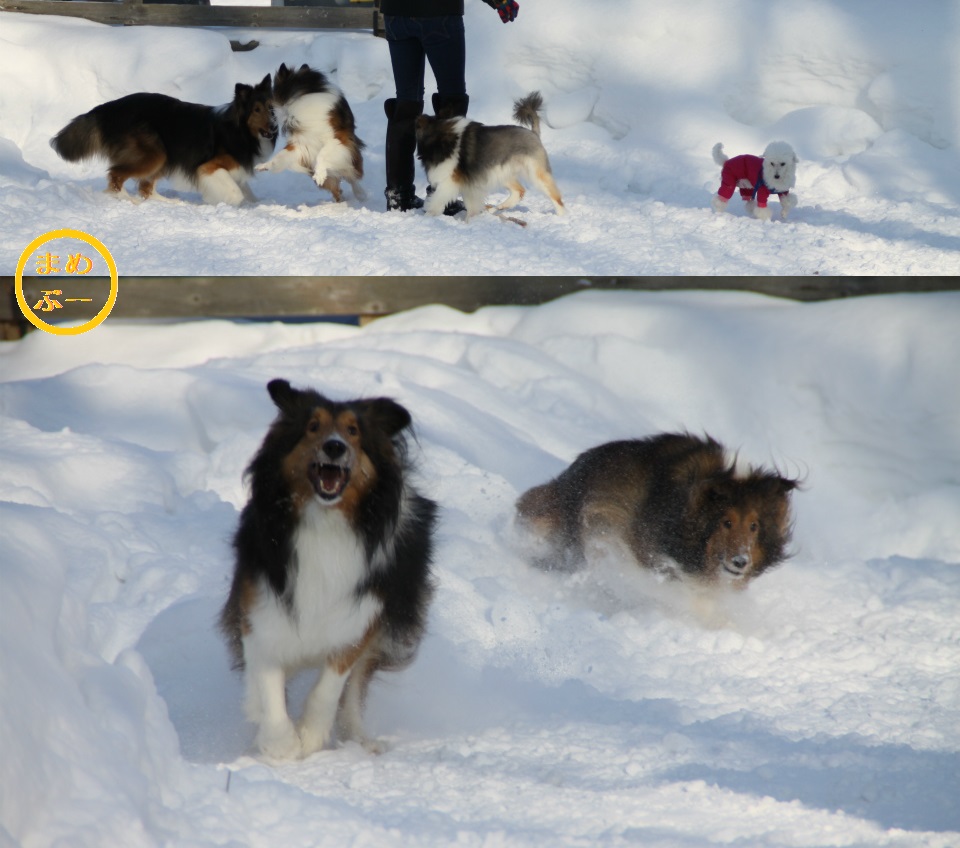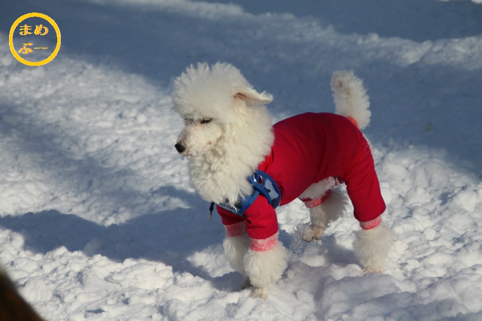 服を着せないとすぐに体中が雪だまだらけになってしまうし、これでぷーちゃんも思う存分雪の中を走れたかな?