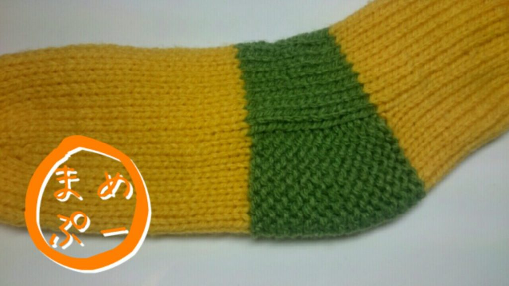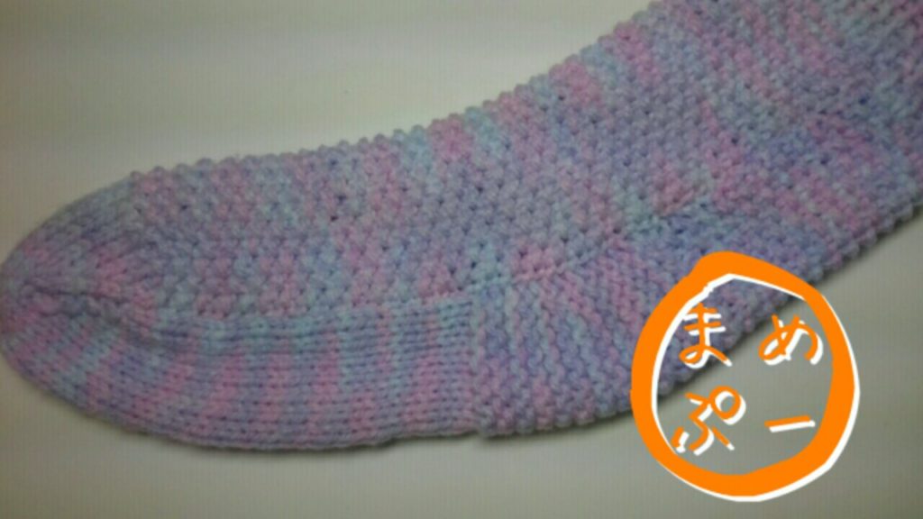 ルームソックスで編み物の縫い合わせを練習中!