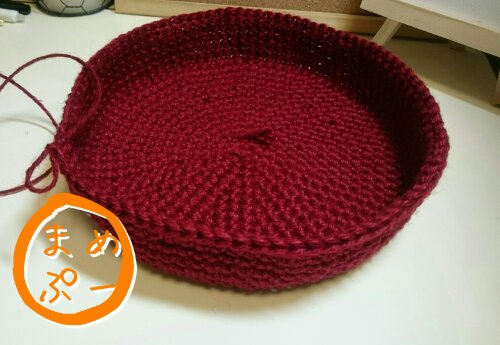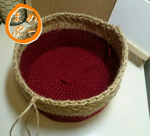 ここまで編んでも、ダルマの麻ひもは糸の長さがあるので、まだ少し余っているくらいです。