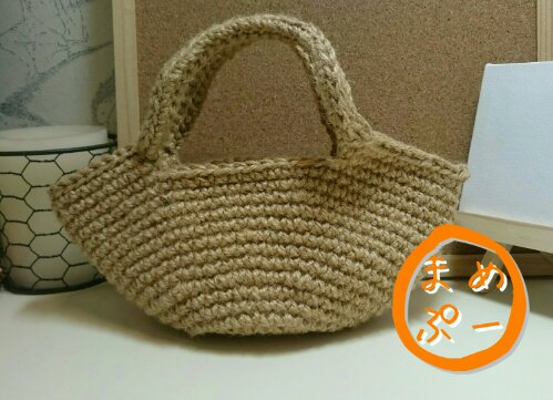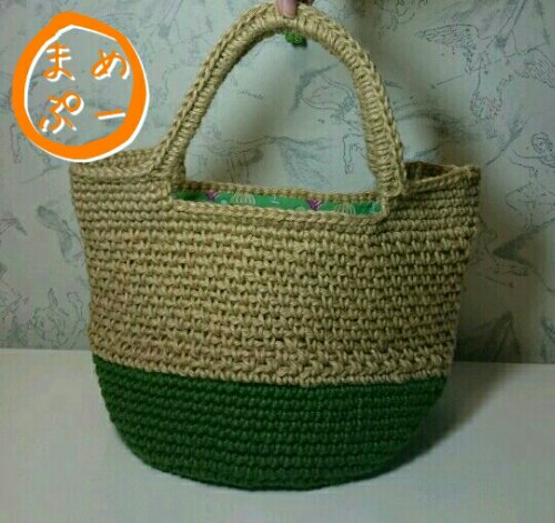 デザインは以前作ったグリーンのバイカラー麻ひもバッグと同じ感じで作っています。