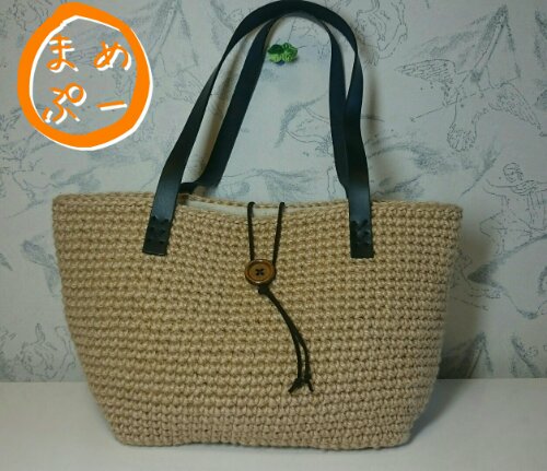 ☆本革持ち手の麻ひもバッグ☆