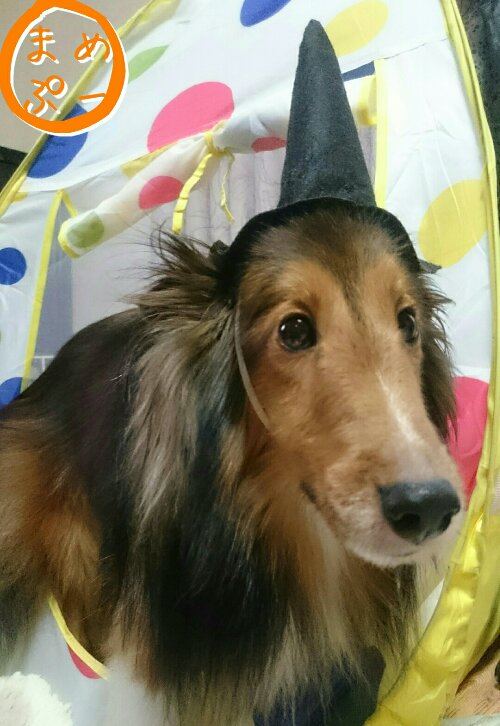 魔女コスプレが可愛かったので、帰ってきてからも帽子を被らされるビクター(・∀・)