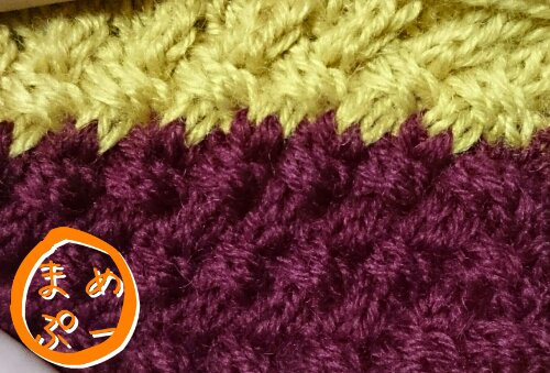 余っていた中途半端な糸を使って他の編み方も試してみましたがボルドー色とマスタード色はやっぱり相性抜群です☆