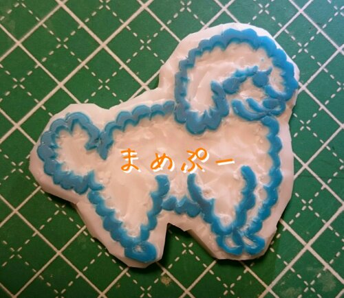 プードルのもこもこっとした毛の部分は、ナイフの刃先を斜めに刺して、ナイフではなく板の方を回すようにして切る(小さな○をたくさん切り取るようにする)とやりやすかったです。