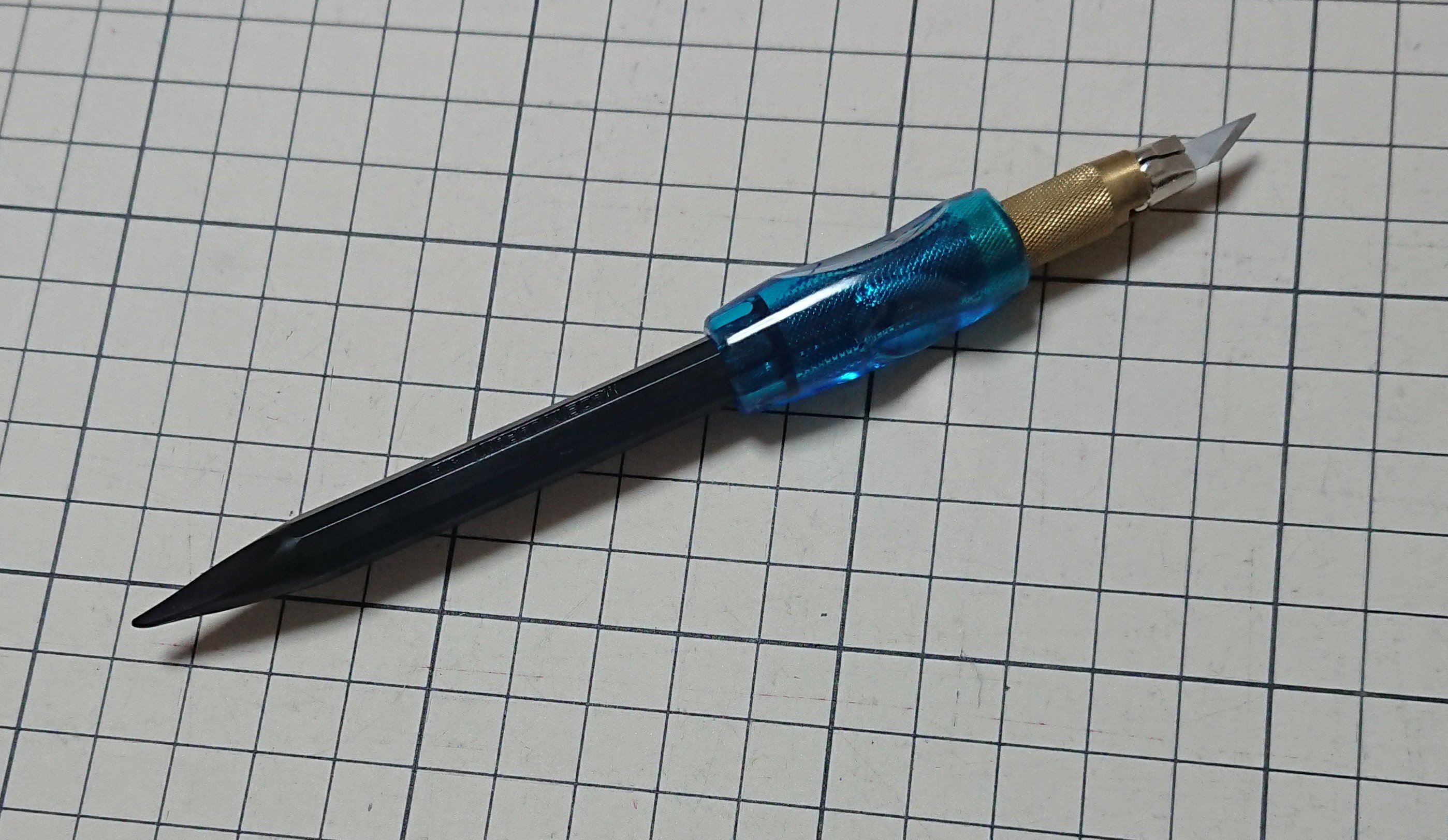 (握りやすくするために、鉛筆に使うグリップ用のゴムみたいなものを付けています)