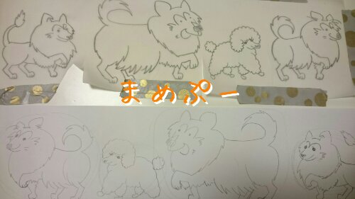 せっかくなのでデザインは我が家の4ワンみんなを描きたいと思ったので、4匹で並んで歩いている絵を描いてみました!
