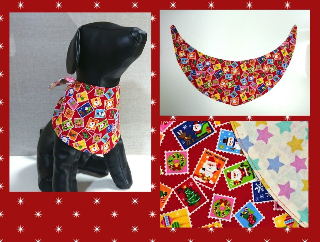 サイズ中*クリスマスバンダナ【切手サンタ赤】