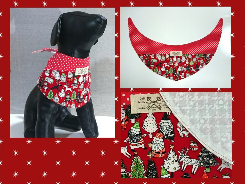 サイズ中*クリスマスバンダナ【ツリーとサンタ達】