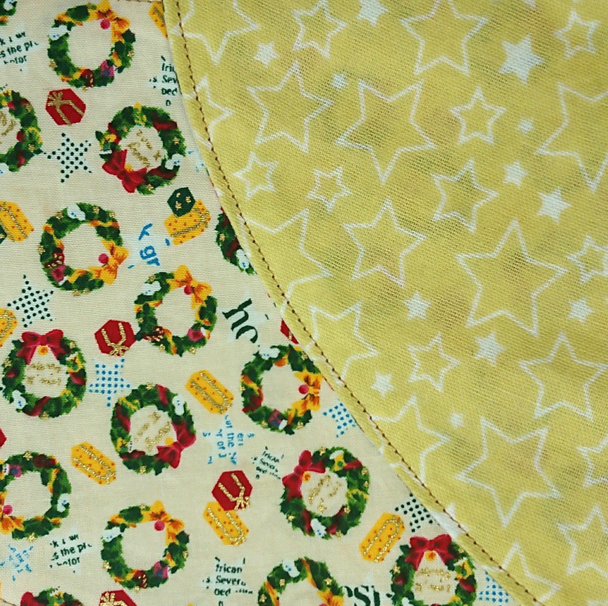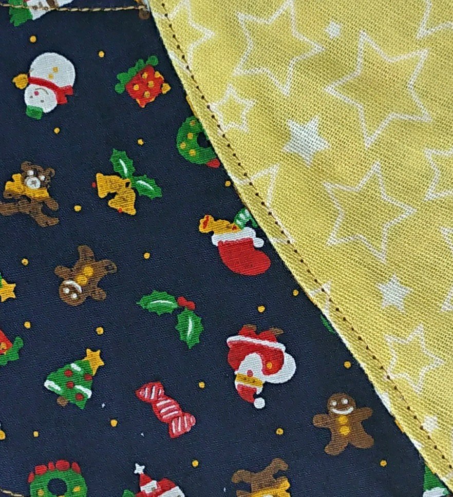 今回作ったバンダナは、表地のクリスマス柄はサイズによってデザインが別々です。
