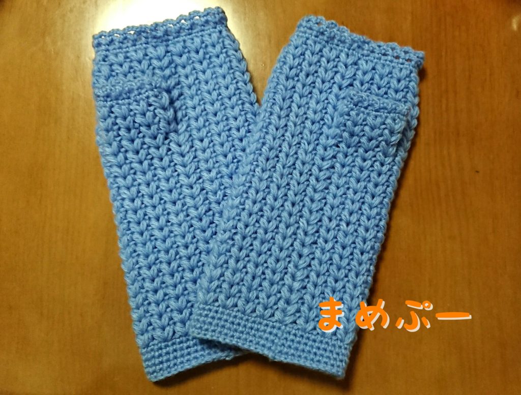手のサイズに会わせて少し目の数を減らしてみたり、指の編みかたを変えてみたりしてみました。